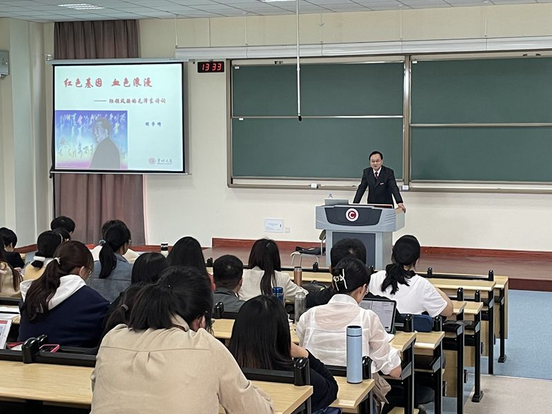 4月28日,直播比分 在开展党史学习教育中举办“红色基因,血色浪漫:毛泽东诗词”为主题的讲座。本次讲座由常州大学胡学琦老师主讲,直播比分 学生党员和入党积极分子参加了本次讲座。讲座由直播比分 党总支副书记展云主持。