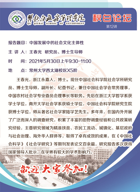 秋白论坛第12讲:中国发展中的社会文化主体性