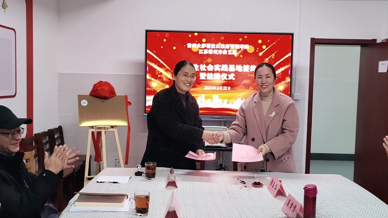 仪式上,陈粲与夏雪慧共同为大学生实践基地揭牌,林娜与夏雪慧签署大学生社会实践基地协议。