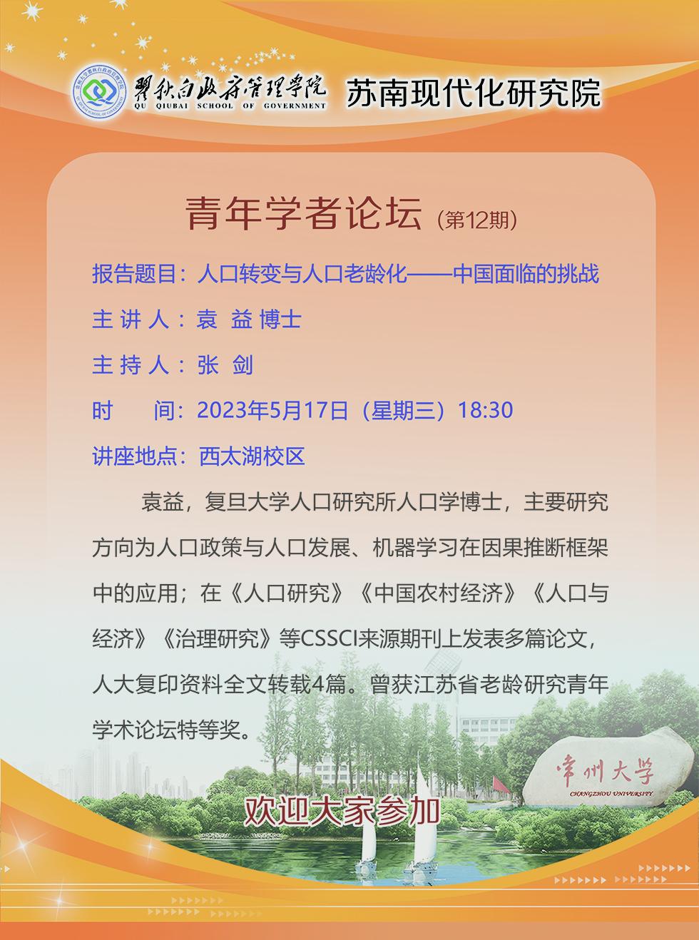 青年学者论坛第12期:人口转变与人口老龄化——中国面临的挑战
