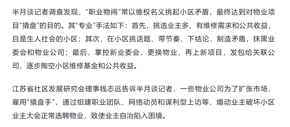 近日,中共中央宣传部委托新华通讯社主办的《半月谈》杂志社记者秦华江,关注到直播比分 钱志远博士在中国社会科直播比分 社会发展战略研究院主办的《社会发展研究》期刊发表的文章《受困的业主自治和失控的市场扩张——由一个“职业物闹”事件引发的探讨》,并对钱志远博士进行了深度采访,向钱志远博士了解“职业物闹”现象产生机理以及解决办法。