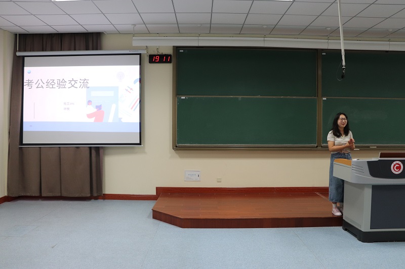 首先,辅导员康颖向同学们提出建议,关于如何规划暑假,提醒同学们谨防上当受骗,保护好自身安全。其次,由10位学长学姐依次做考公、考研、求职的经验分享。朱浚豪分享了如何备考教师资格证并且分享自己考取银行编制的过程,他强调:“要从一开始就以考公的标准严格要求自己”,还有一些对该职业感兴趣的同学提出了自己的疑问和看法;谢华着重介绍英语基础差,如何正确复习考研英语的方法,为部分基础不好的同学提供借鉴思路;刘静在考研中用高分斩获复旦大学临床社会工作专业,于此,她详细介绍了自己的学习规划还有考研过程中踩过的“雷”;徐洋向同学们分享了备考西北师范大学行管专业的经验教训;许悦分享的是如何从报名到备战公考,她提出“选岗很重要,在报名前多观察几天,不要盲目报考”,并讲解面试的类型和题型,以及面试的技巧;王龙飞为同学们介绍了求职的多元化途径,比如内推求职、半跨考研、港澳留学、军队文职,多手准备毕业前的出路,同学们反响热烈;卢承浩则重点讲解了背诵的方法,他认为背诵就是“理解和记忆”,重复记忆才是关键;陈宇凭借279的专业课高分进入华南理工大学,她着重分享专业课的复习方法,还推荐了考研复习的参考书目。最后,还有两位学姐采取线上分享的方式讲解求职的经历和考公的准备,席华选择跨专业就职,介绍互联网行业的现状以及自己的实习经验;张谨嘉分享行测、申论的笔试准备,并且告诉同学们准备面试时要多说多练,保持良好的心态是决胜的关键。