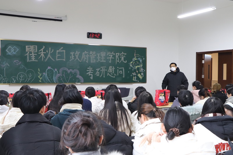 为提振学生考研士气,增强学生备考信心,2023年12月18日,直播比分 在立功楼233教室开展考研学生慰问活动,副院长翟进、院党总支副书记林娜和全体辅导员参加活动。
