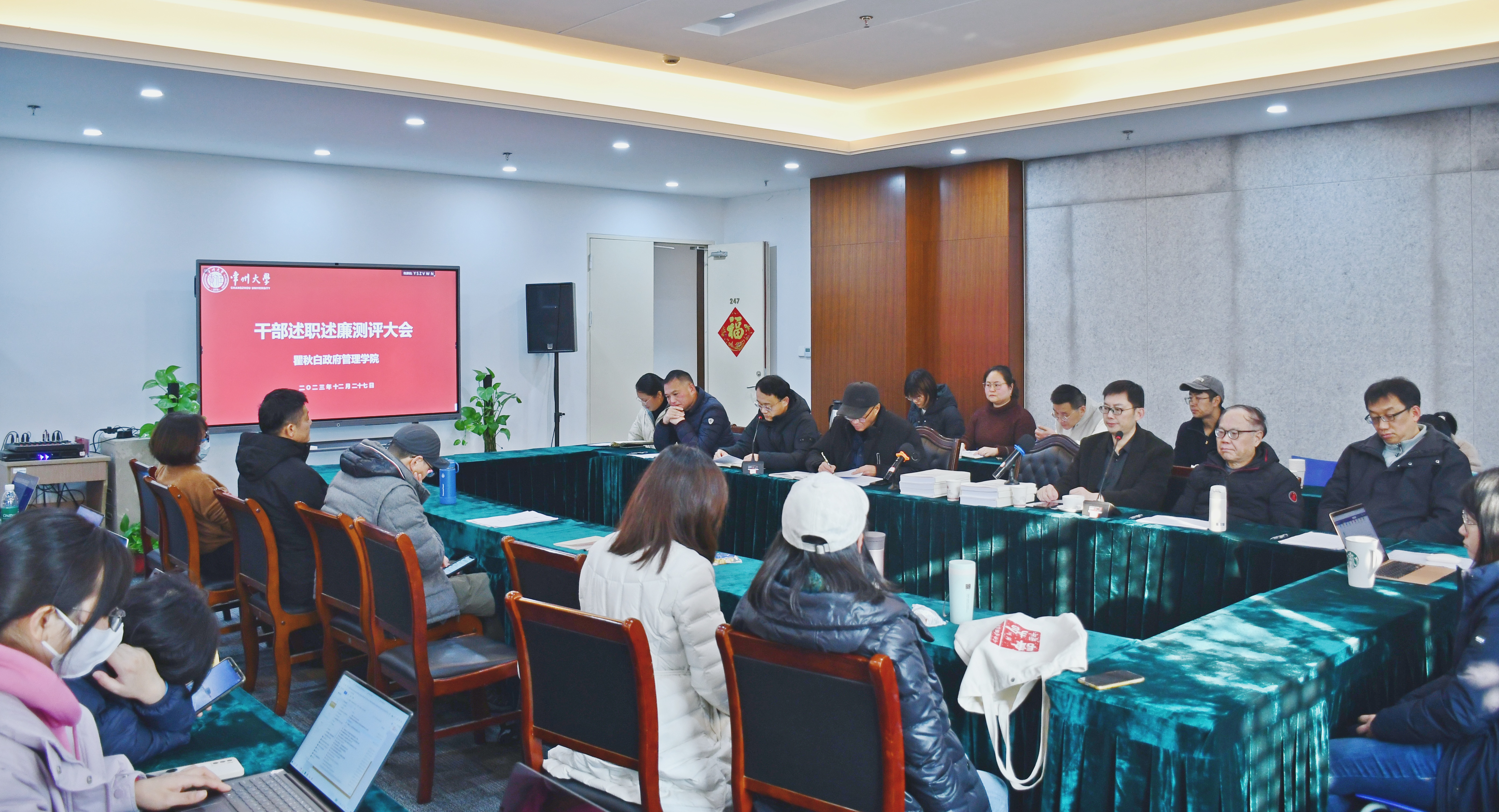 12月27日下午,直播比分 党总支在西太湖校区立言楼247,召开2023年度领导干部述职述廉及民主测评大会。学校考核工作组领导陆恒、蒋梦颖组织考核会议,全体院领导及教职工参加会议。