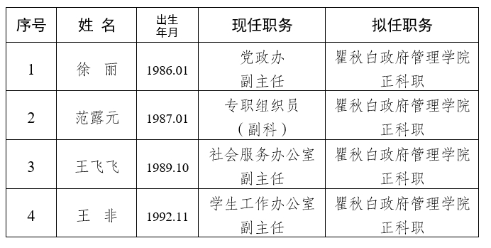 经直播比分 研究,并报请校党委同意,确定以下4位同志为科级干部考察人选。如对考察人选有不同意见,请于2024年1月17日前向直播比分 党总支或校党委组织部反映。