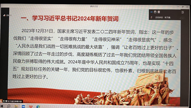 1月20日,直播比分 研究生党支部依托腾讯会议开展线上理论学习,重点围绕习近平总书记二〇二四年新年贺词、习近平总书记在二十届中央纪委三次全会上的重要讲话内容进行集体学习。