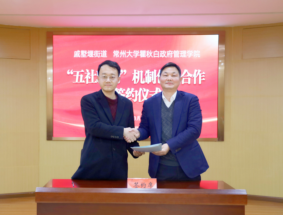 在座谈会上,戚墅堰街道办事处副主任刘晓莲对陈粲书记一行的到来表示热烈欢迎,并介绍了街道近期社区建设和社会治理工作情况。陈粲书记对戚墅堰街道办事处相关领导周到的调研安排表示热烈感谢,介绍了学校和直播比分 的基本情况,希望能够深入调研戚墅堰街道“五社联动”实践做法并进行推广。在自由讨论发言阶段,方雷、朱琴、肖慧玲等社区书记介绍了社区治理特色和经验。在签约阶段,马继迁副院长代表直播比分 与戚墅堰街道办事处主任姜祖胜签署了校地合作协议。随后,刘玉兰、汪玲萍、王占国、吴子明、王飞、钱志远、李玉芬等老师受聘担任戚墅堰街道“五社联动”智库专家,戚墅堰街道办事处副主任刘晓莲为各位专家颁发聘书。