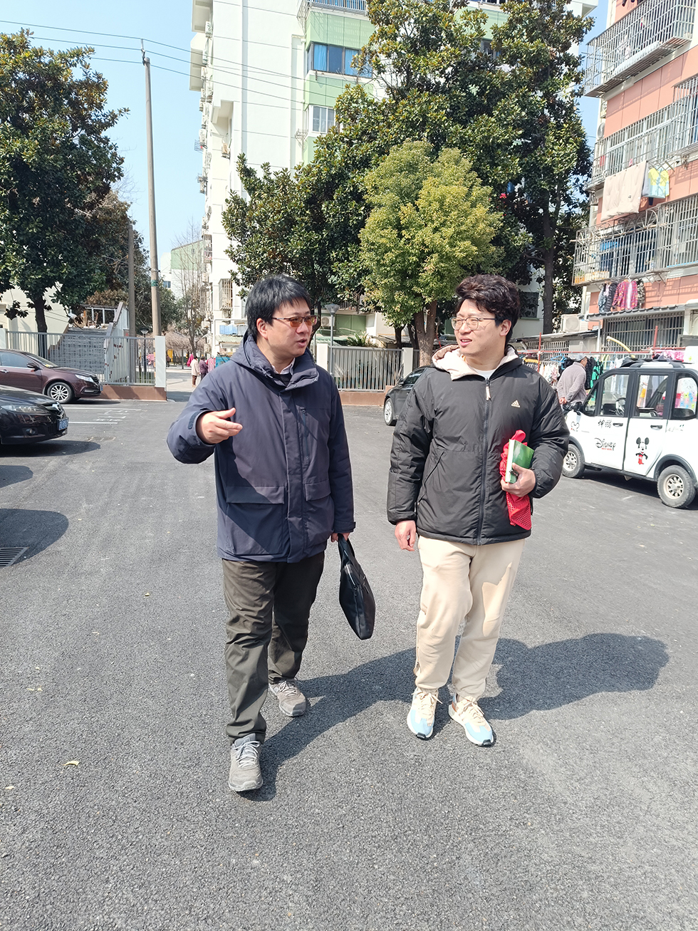 3月7日,公管系王飞老师、社工系吴子明老师前往永红街道花园南村社区进行实地调研。该社区的更新目标是小区内的一个广场,面积较大,但广场的环境和功能还有很大的提升空间,加上小区超30年的房龄,老人居多、租户较多,社区参与难度较大。两位老师与社区工作人员就项目的下一步工作进行了探讨,同时参观了小区内正在改造的其他项目,包括停车场、老年就餐点、儿童活动中心等。