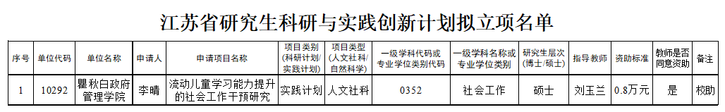 根据江苏省学位委员会办公室《关于做好2024年江苏省科研与实践创新计划项目申报工作的通知》(苏学位办[2024]4号)精神,常州大学研究生院《关于做好2024年江苏省研究生科研与实践创新计划项目申报的通知》,经学生申报、导师初审,专家评审,现将2024年江苏省研究生科研与实践创新计划拟立项名单进行公示: