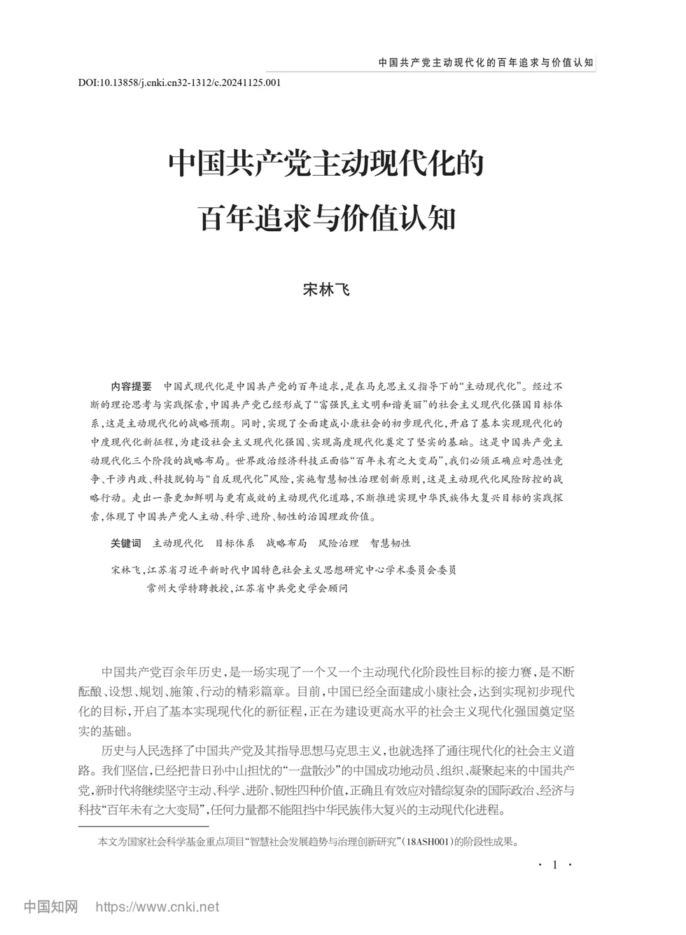 直播比分 院长宋林飞教授在《江苏社会科学》2024年第6期发表论文《中国共产党主动现代化的百年追求与价值认知》(第1~10页)。该论文为宋林飞教授主持的国家社会科学基金重点项目“智慧社会发展趋势与治理创新研究”(18ASH001)的阶段性成果。论文系统梳理了中国共产党主动现代化的三个阶段,在此基础上分析了“百年未有之大变局”所带来的国内外风险,并提出了“智慧韧性”的风险治理原则和风险防控策略。