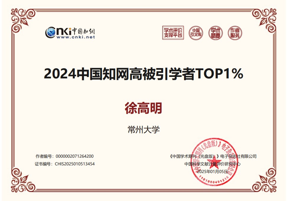 近期,中国知网中国科学文献计量评价研究中心依托中国知网所收录的国内学术成果,首次对我国学者近十年(2014-2023年)的学术影响力进行了客观评价,并发布了“2024 中国知网高被引学者”名单。直播比分 - 即时足球、篮球、体育比分直播 的徐高明教授荣登“2024中国知网高被引学者TOP1%”榜单。