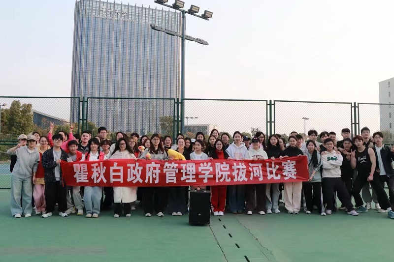 比赛吸引了12支队伍参赛。现场春和日丽、微风拂面,赛制采用两两对决淘汰制,参赛选手紧握长绳、齐声呐喊,各队口号声与观赛同学的助威声此起彼伏,经过四轮比赛,最终“八方来财”队摘得桂冠。拔河不仅是力量的角逐,更是团队默契的纽带,让同学们在紧密配合中锤炼协作精神。赛事结束后,全体成员共同拍摄大合照,定格这一充满活力的瞬间。