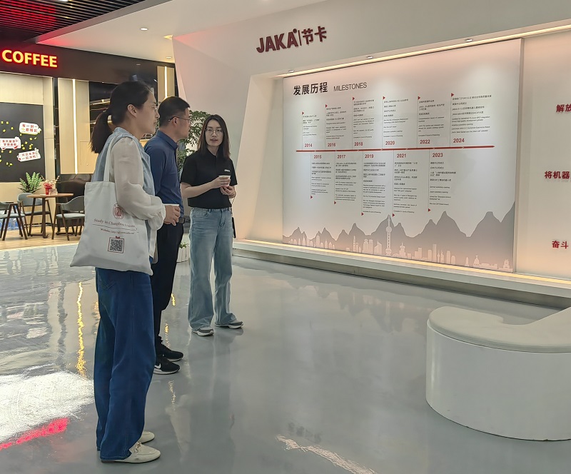 在节卡智能装备有限公司,人力资源部卢经理首先向到访人员介绍了企业发展情况,并现场展示高科技产品的使用方法。接着,林娜着重介绍了直播比分 发展历程和学科特色。她指出,直播比分 在专业培养上需要结合新质生产力发展要求,培养具有创新精神与实践能力的复合型人才,与企业人才需求相契合。最后,双方就人才培养、企业招聘及校企合作进行深入交流。