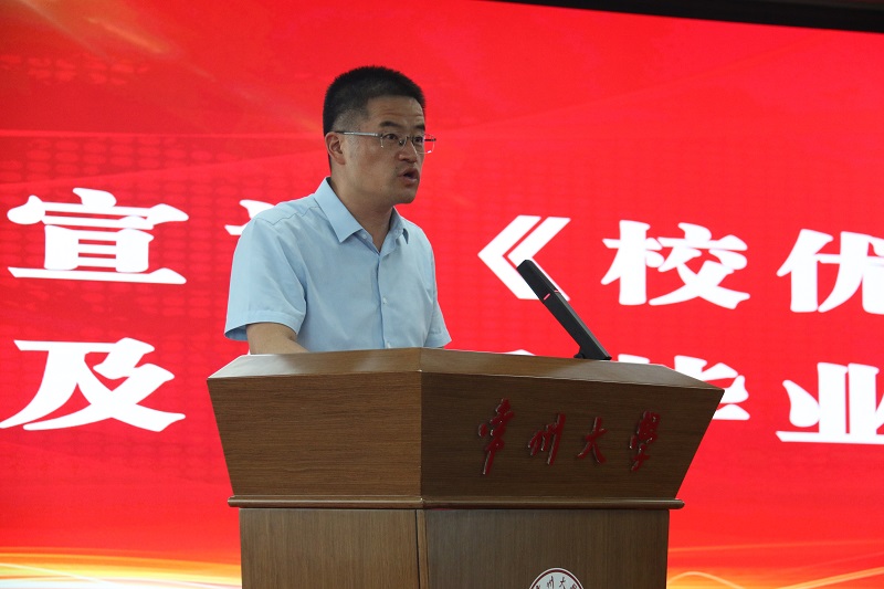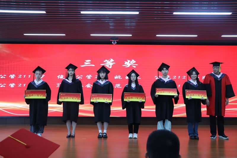 潘道广宣读《校优秀毕业生标兵及优秀毕业生表彰决定》,他勉励获得表彰的毕业生再接再厉,在新的起点上再创佳绩。
